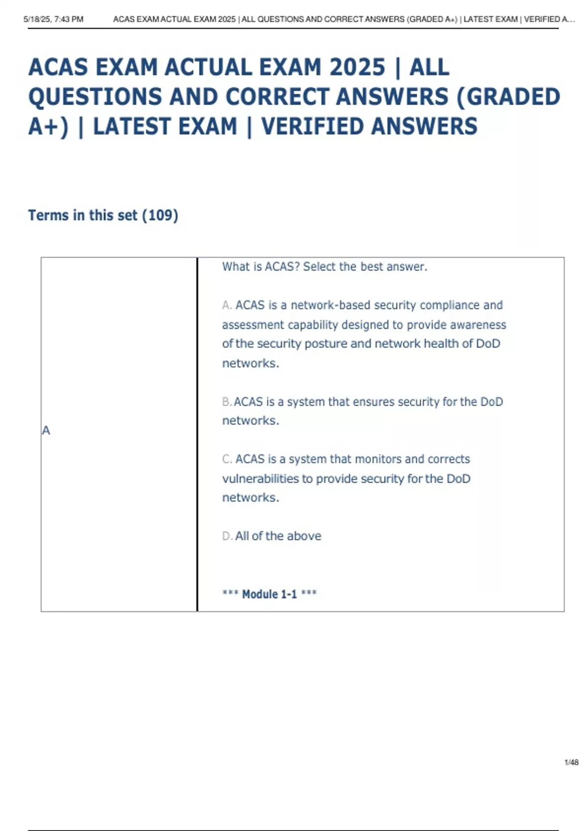 ACAS EXAM ACTUAL EXAM 2025 | ALL