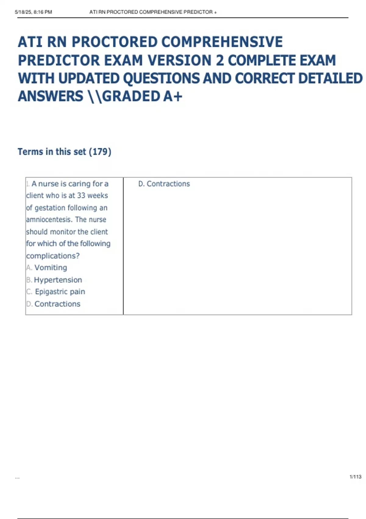 ATI RN PROCTORED COMPREHENSIVE PREDICTOR EXAM VERSION 2 COMPLETE EXAM WITH UPDATED QUESTIONS AND CORRECT DETAILED ANSWERS GRADED A+