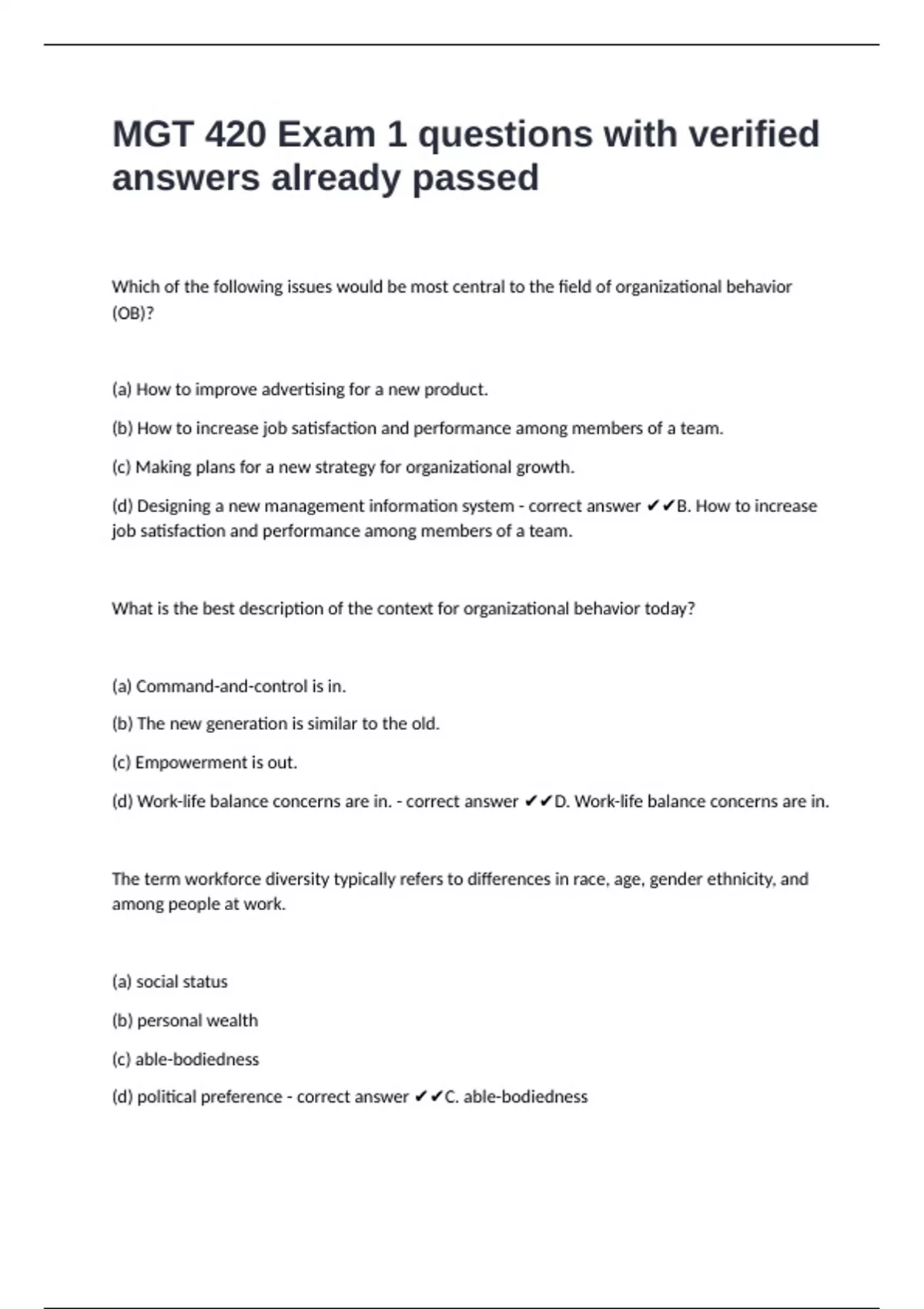 (d) political preference - correct answer ✔✔C. able-bodiedness
