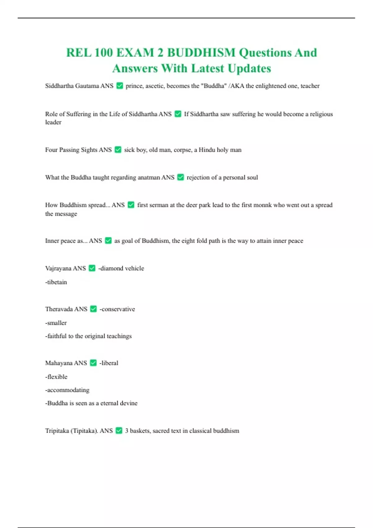 REL 100 EXAM 2 BUDDHISM Questions And Answers With Latest Updates