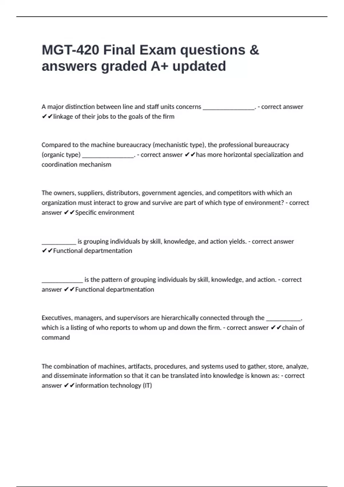 which is a listing of who reports to whom up and down the firm. - correct answer ✔✔chain of