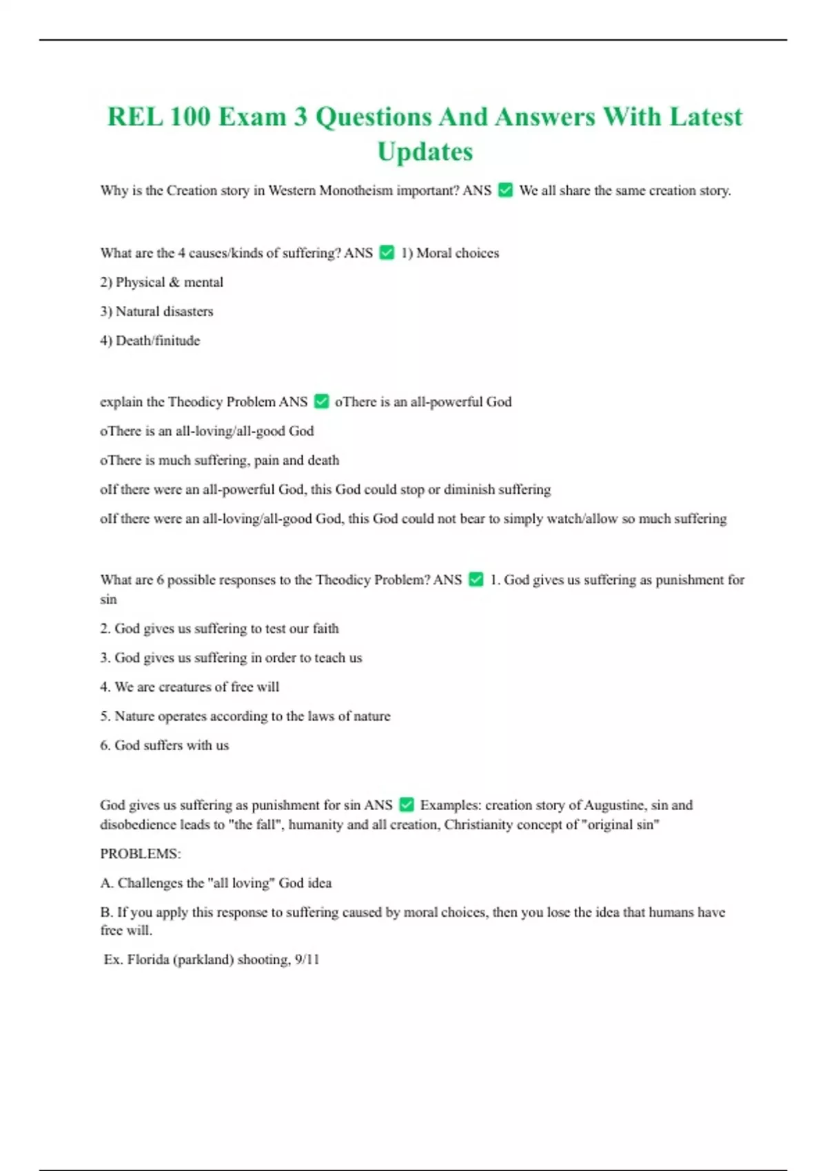 REL 100 Exam 3 Questions And Answers With Latest Updates
