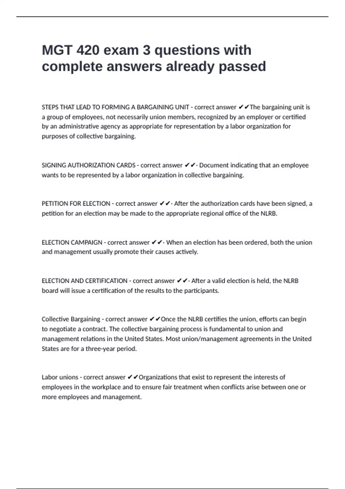 STEPS THAT LEAD TO FORMING A BARGAINING UNIT - correct answer ✔✔The bargaining unit is