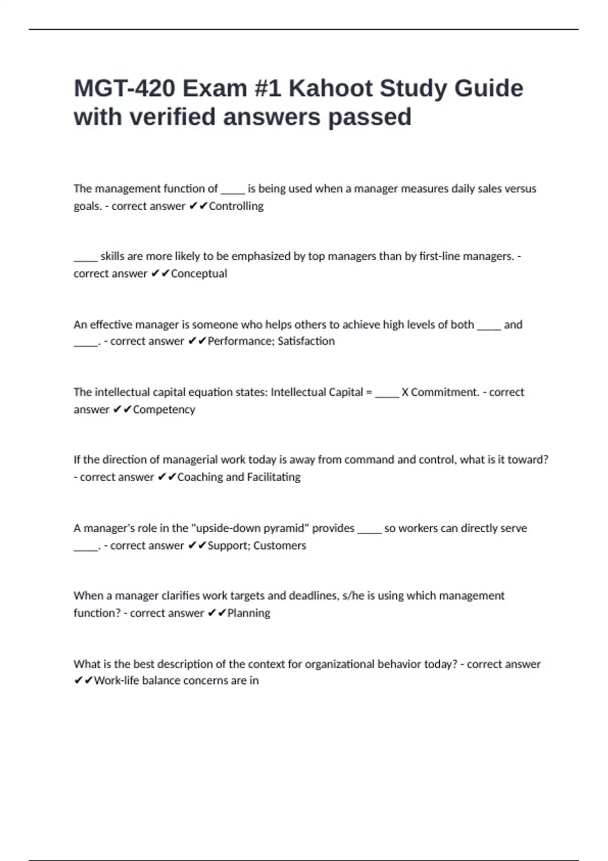 MGT-420 Exam #1 Kahoot Study Guide