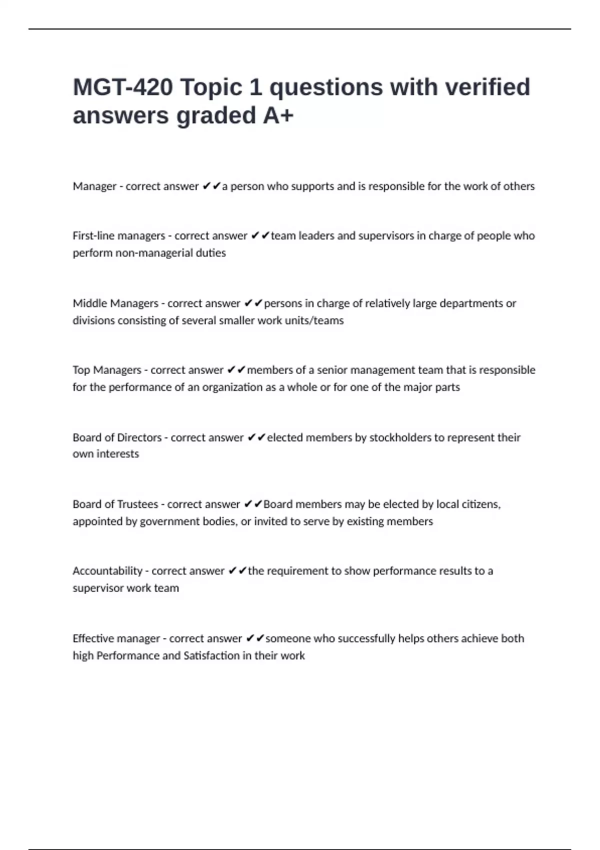 Top Managers - correct answer ✔✔members of a senior management team that is responsible