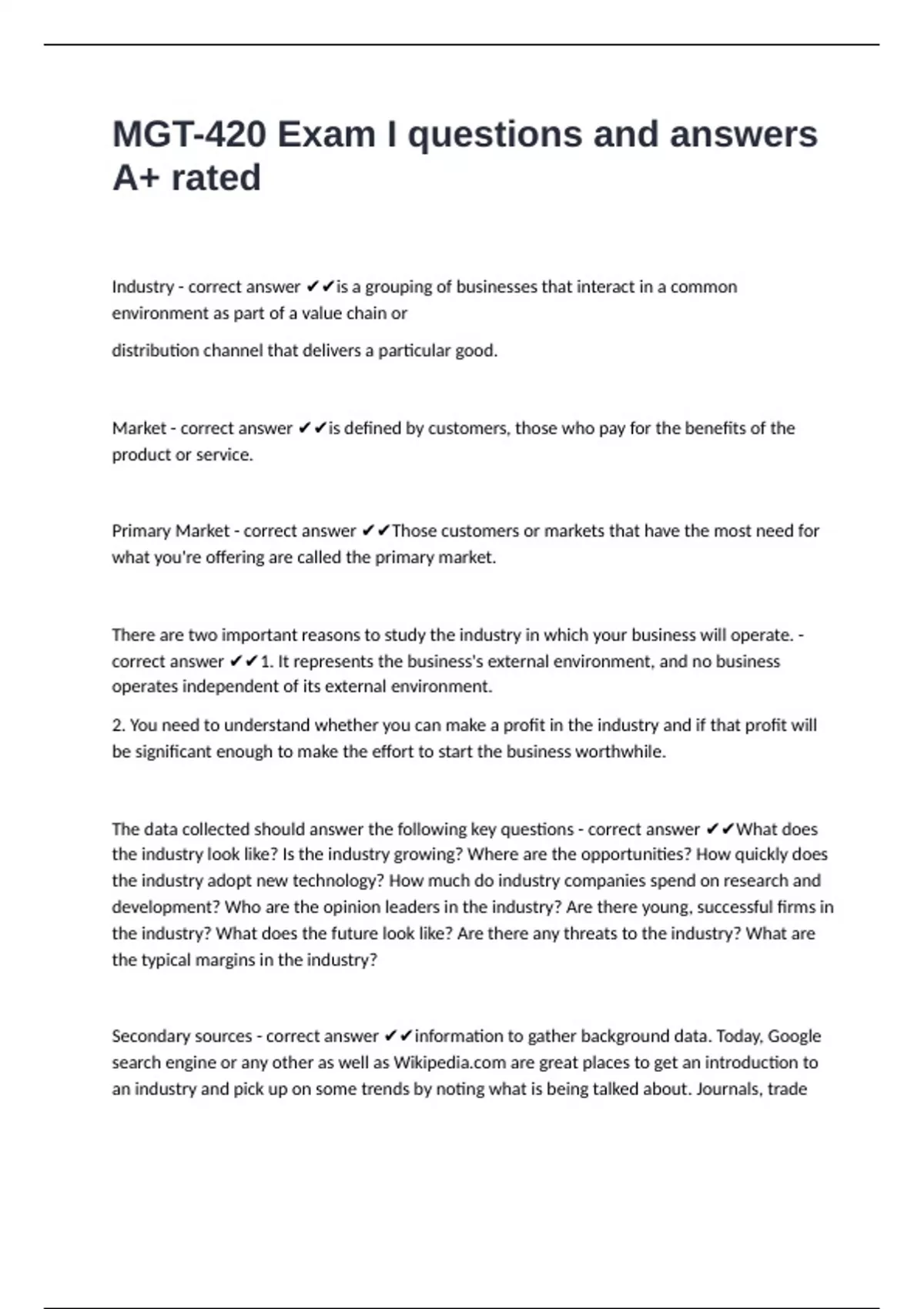 Industry - correct answer ✔✔is a grouping of businesses that interact in a common