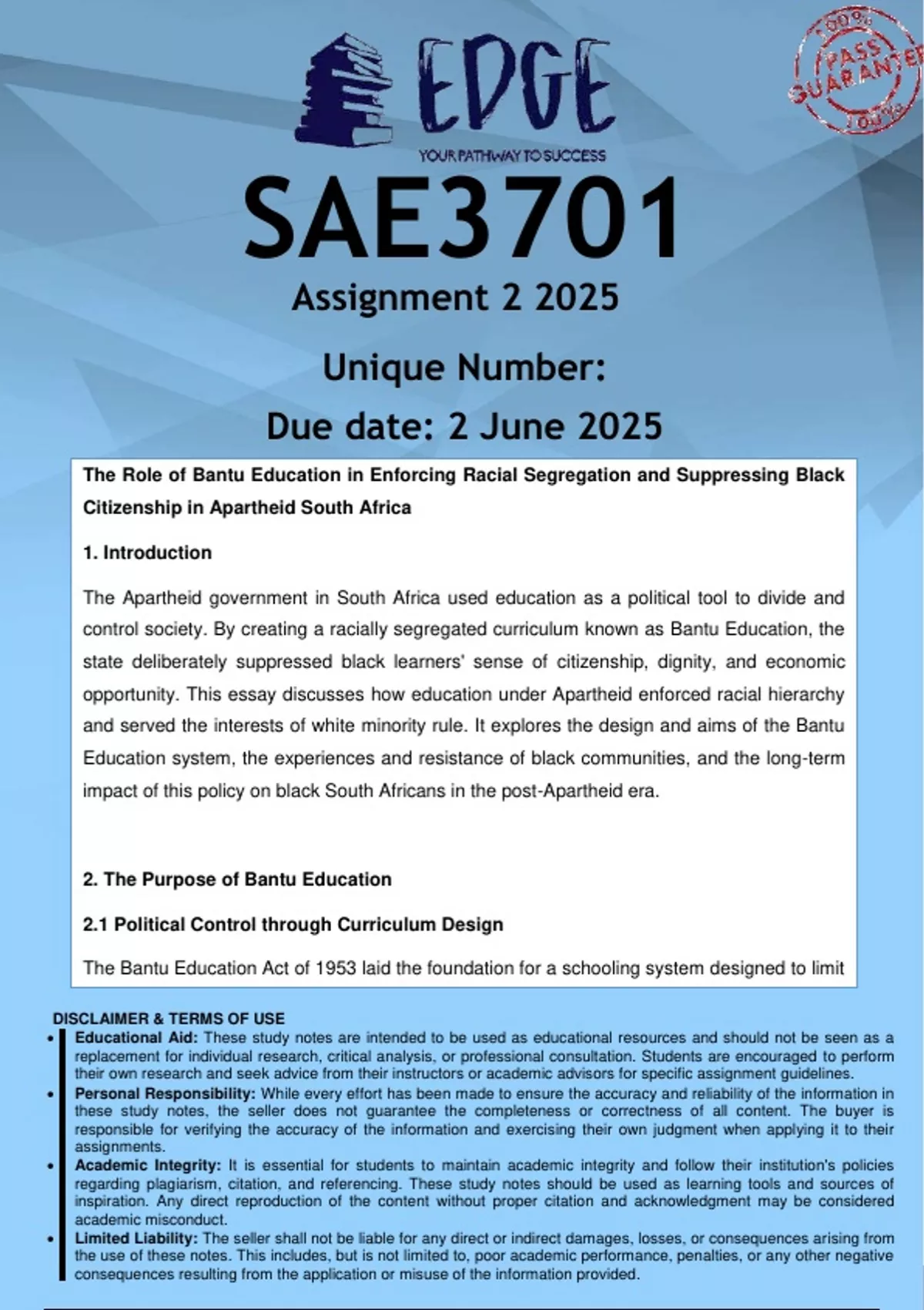 2. BANTU EDUCATION AS A TOOL FOR RACIAL CONTROL