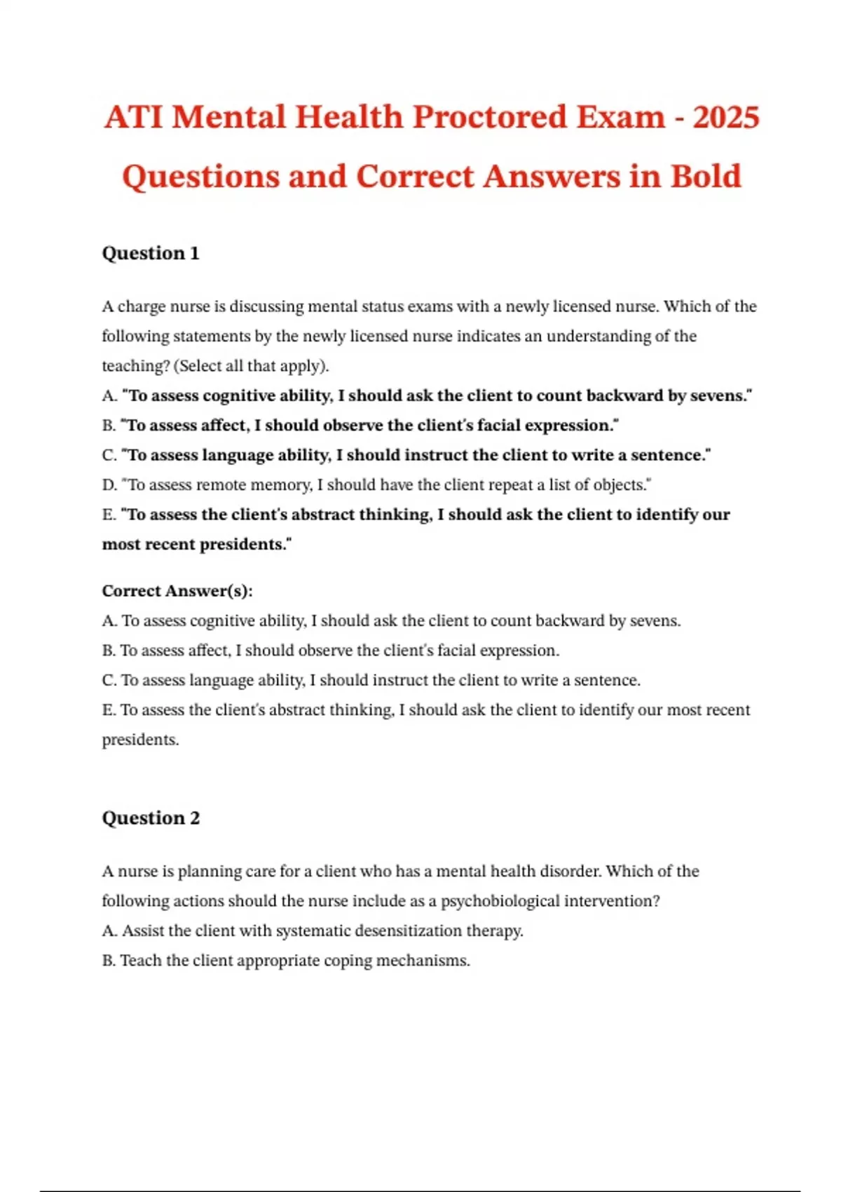 Questions and Correct Answers in Bold