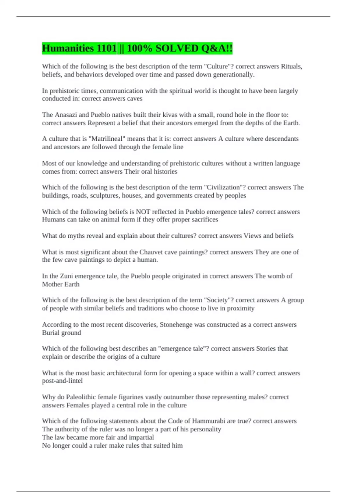 Which of the following statements about the Code of Hammurabi are true? correct answers