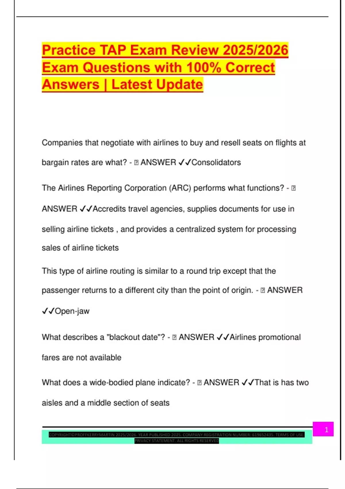 Practice TAP Exam Review 2025/2026 Exam Questions with 100% Correct Answers | Latest Update Companies that negotiate with airlines to buy and resell seats on flights at bargain rates are what? -