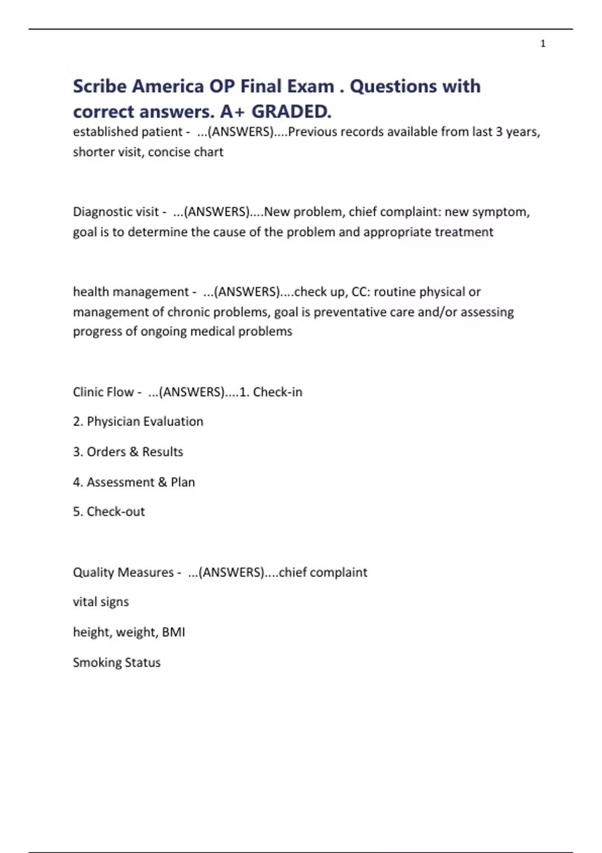 Scribe America OP Final Exam . Questions with
