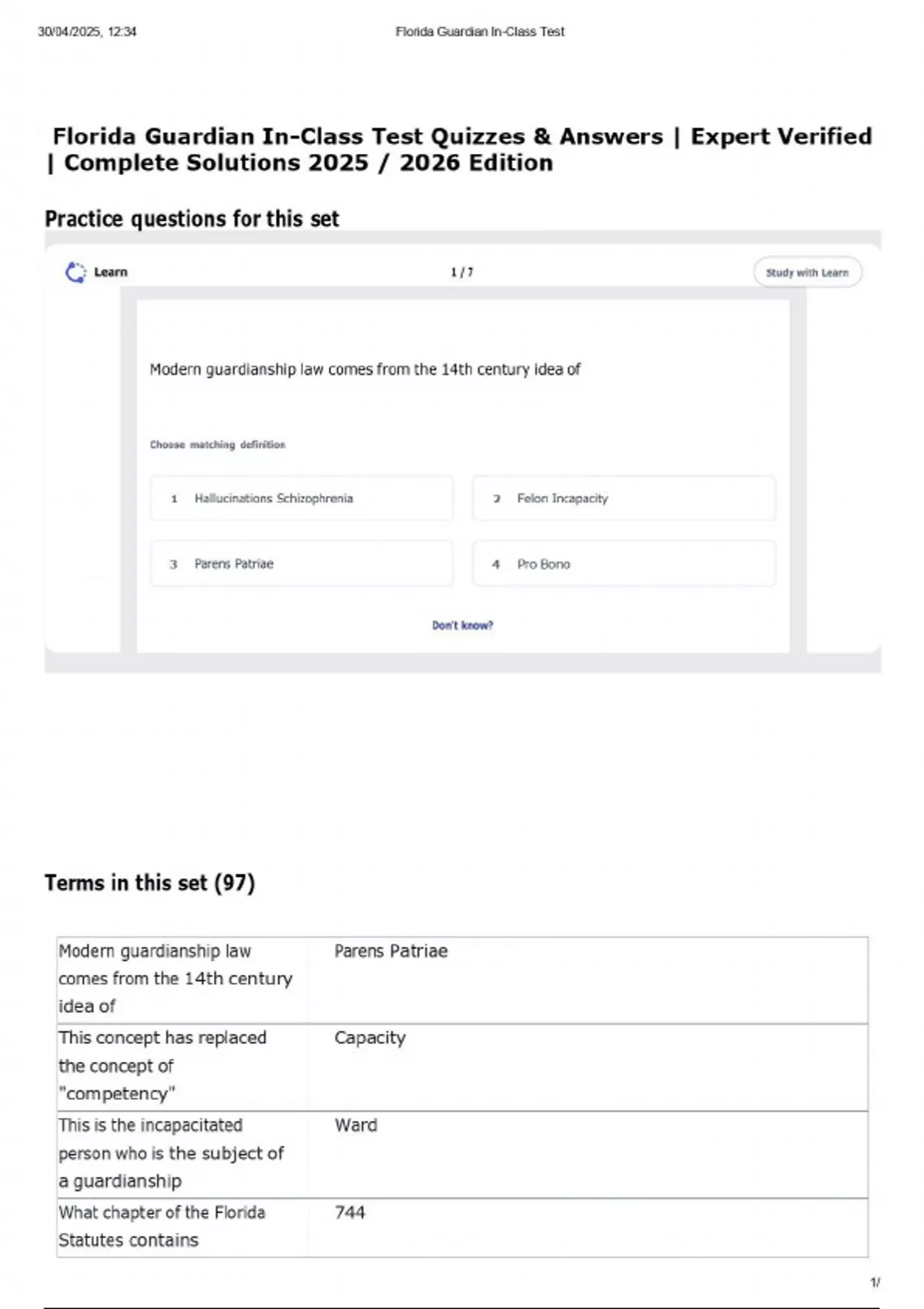 FLORIDA GUARDIAN IN-CLASS TEST 2025/2026| REAL EXAM QUESTIONS| EXPERT VERIFIED| A GRADE