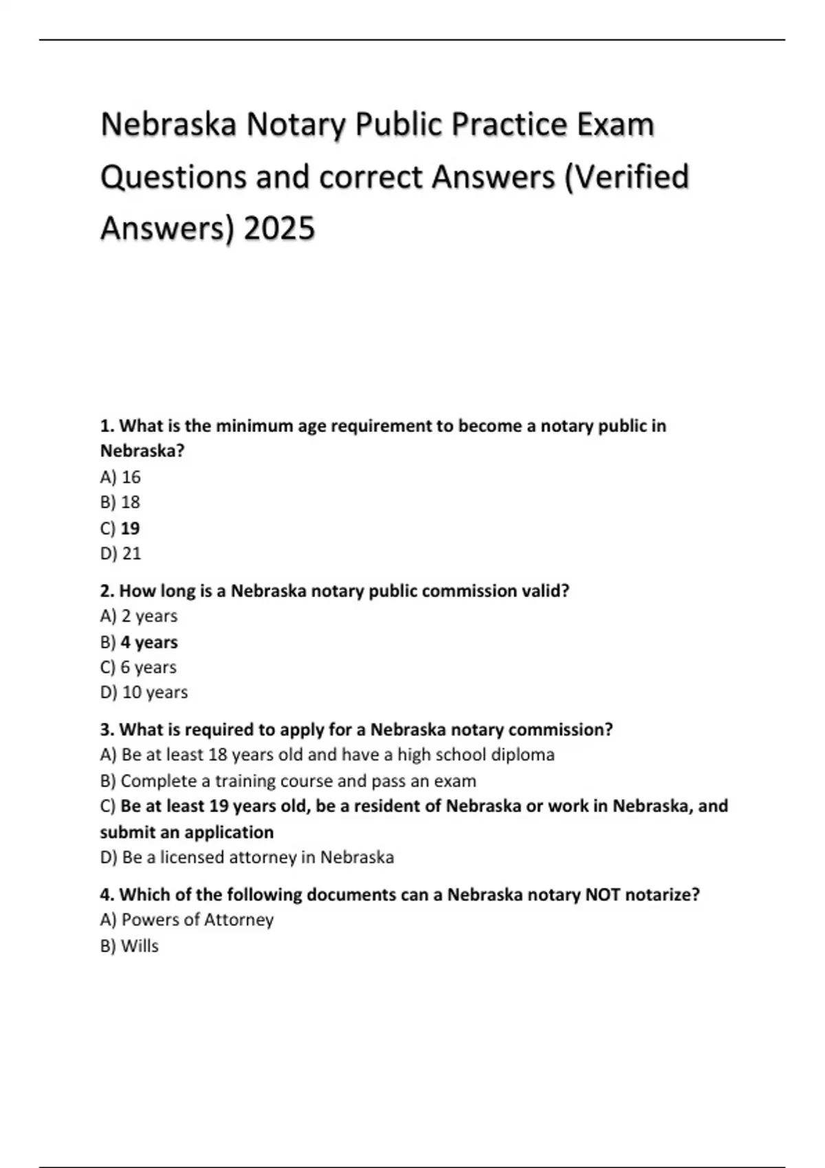 4. Which of the following documents can a Nebraska notary NOT notarize?