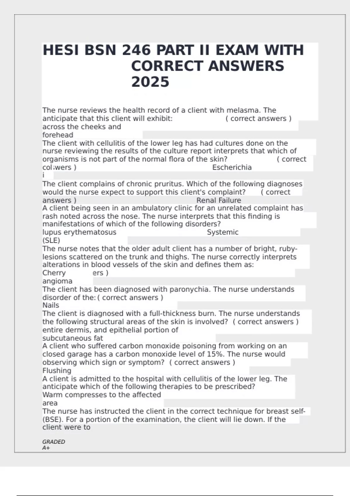 lesions round on the trunk and thighs. The nurse correctly interprets