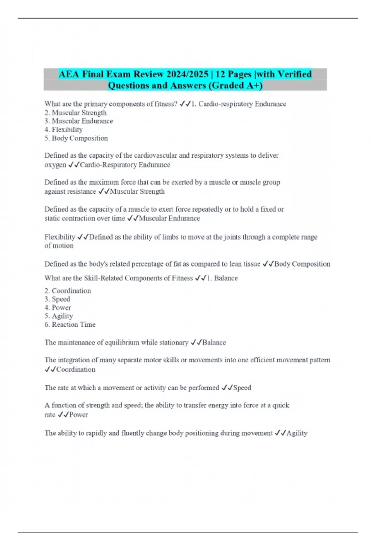 AEA Final Exam Review 2024/2025 | 12 Pages |with Verified Questions and Answers (Graded A+)