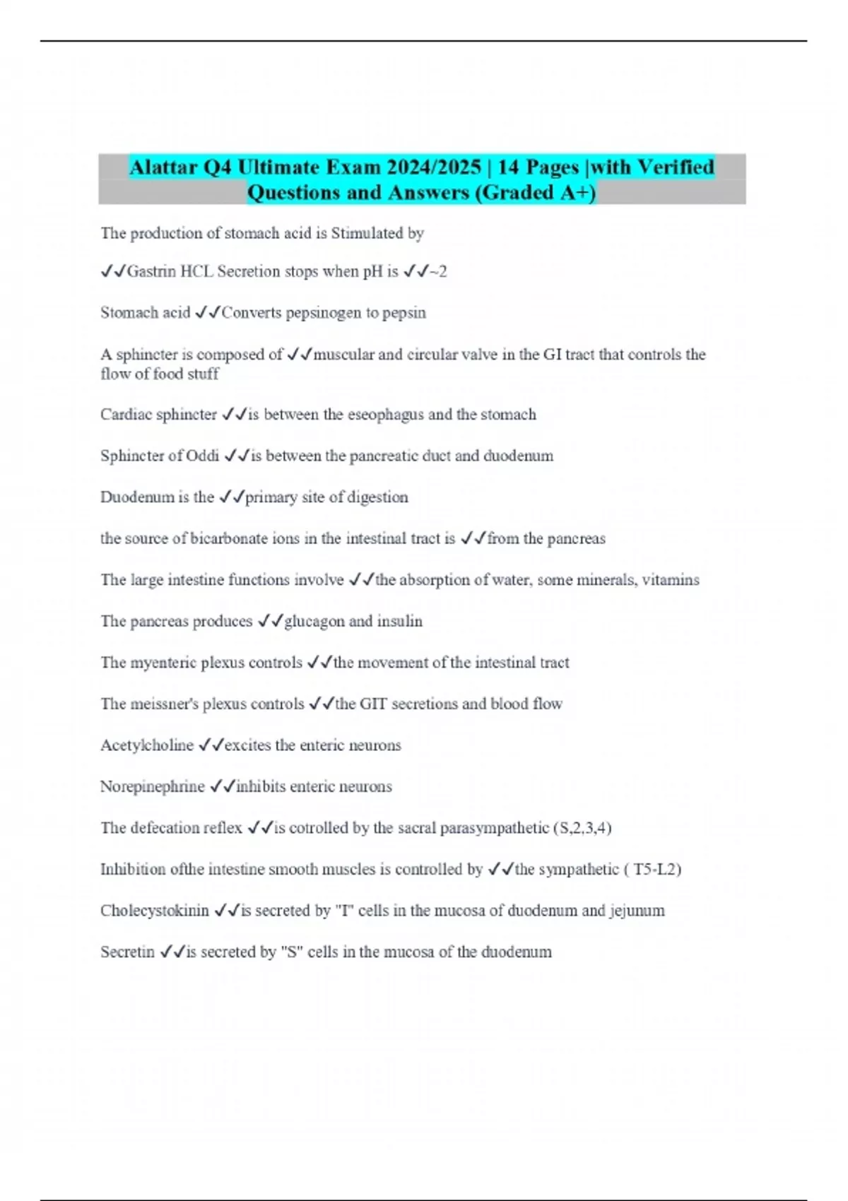 Alattar Q4 Ultimate Exam 2024/2025 | 14 Pages |with Verified Questions and Answers (Graded A+)
