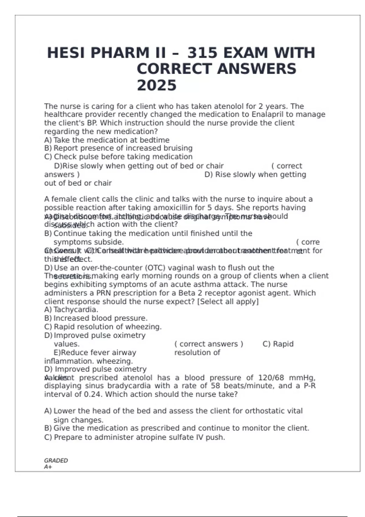 HESI PHARM II – 315 EXAM WITH CORRECT ANSWERS 2025