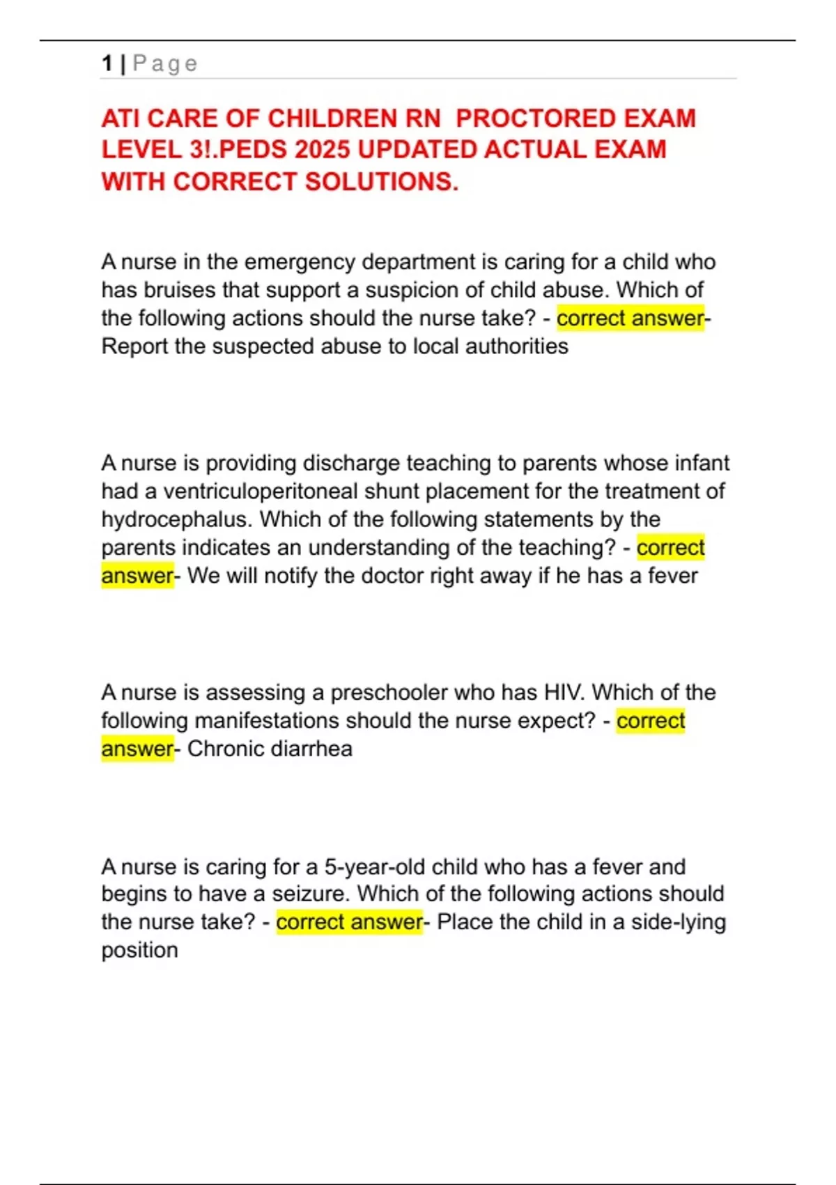 LEVEL 3!.PEDS 2025 UPDATED ACTUAL EXAM