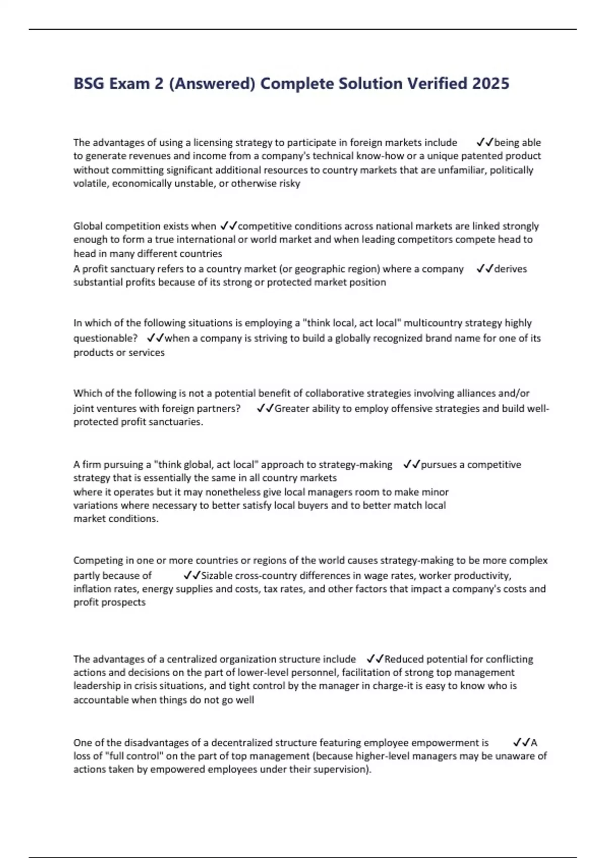 BSG Exam 2 (Answered) Complete Solution Verified 2025