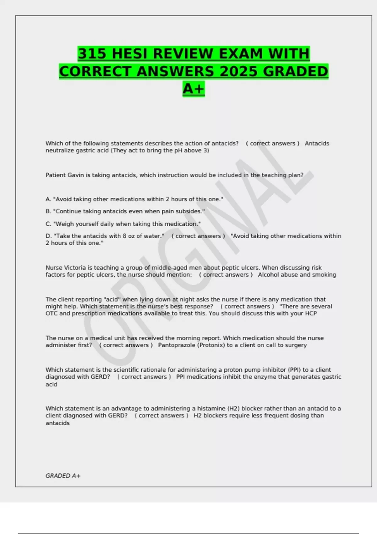 315 HESI REVIEW EXAM WITH CORRECT ANSWERS 2025 GRADED A+