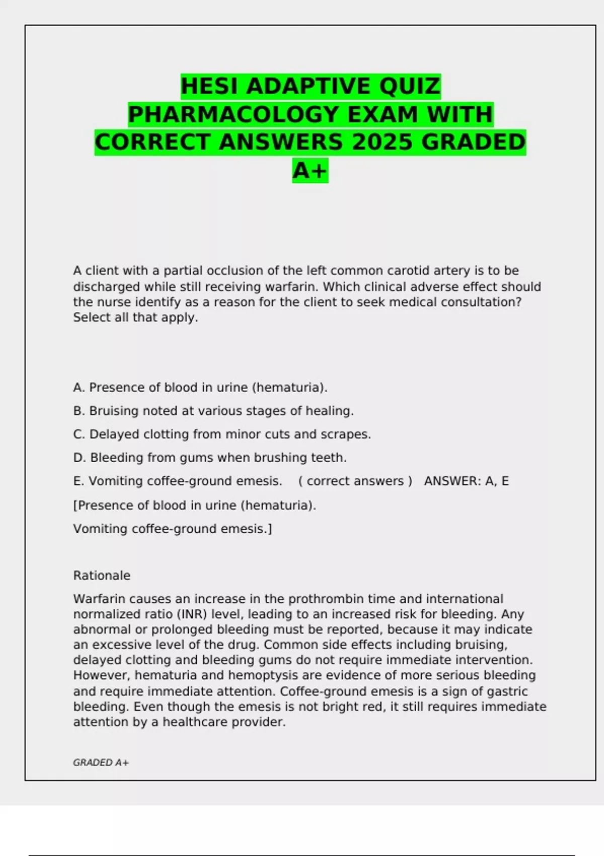 normalized ratio (INR) level, leading to an increased risk for bleeding. Any