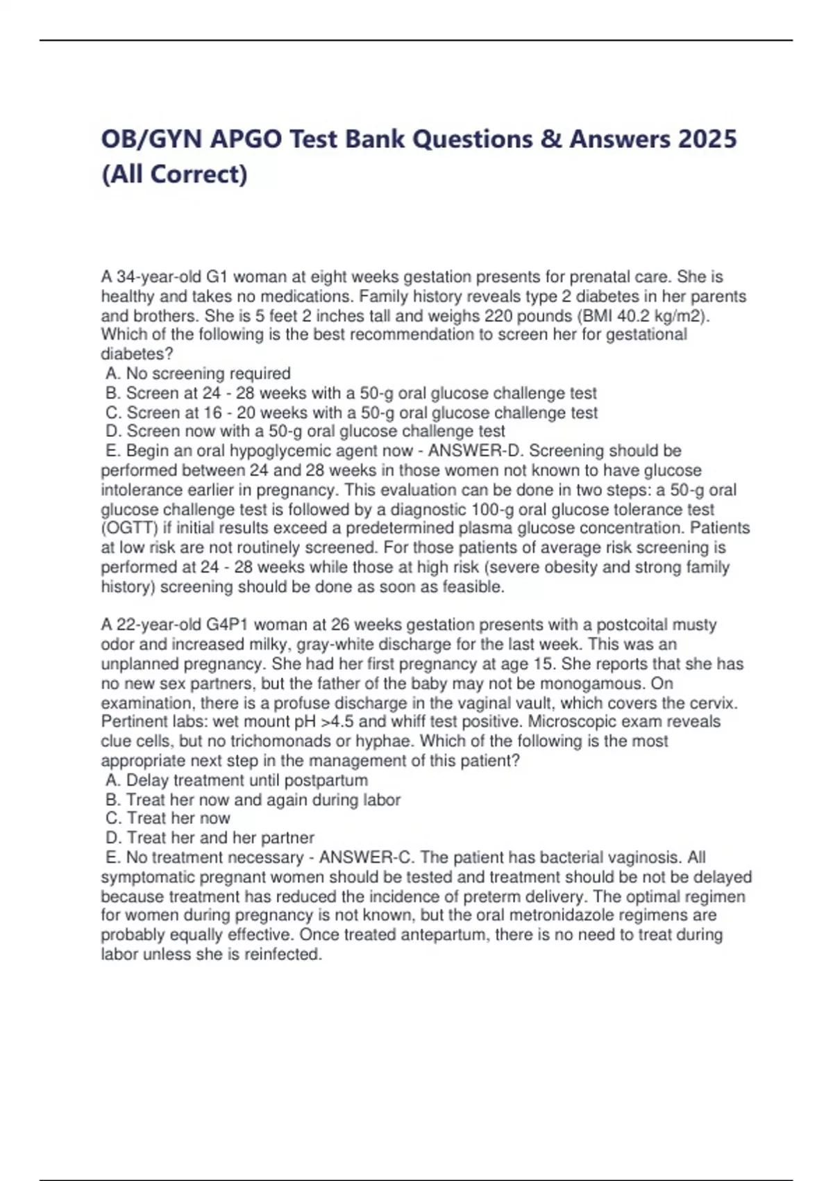 OB/GYN APGO Test Bank Questions & Answers 2025