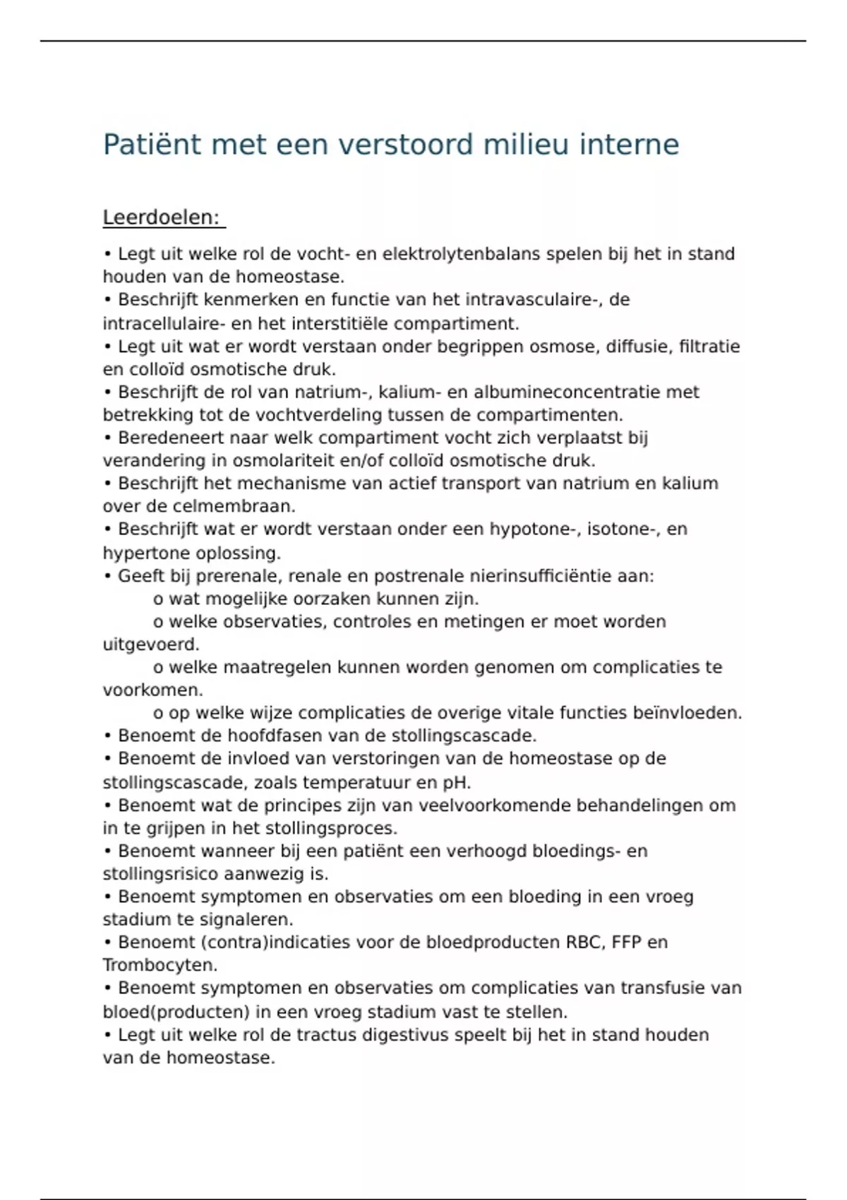 • Legt uit welke rol de vocht- en elektrolytenbalans spelen bij het in stand