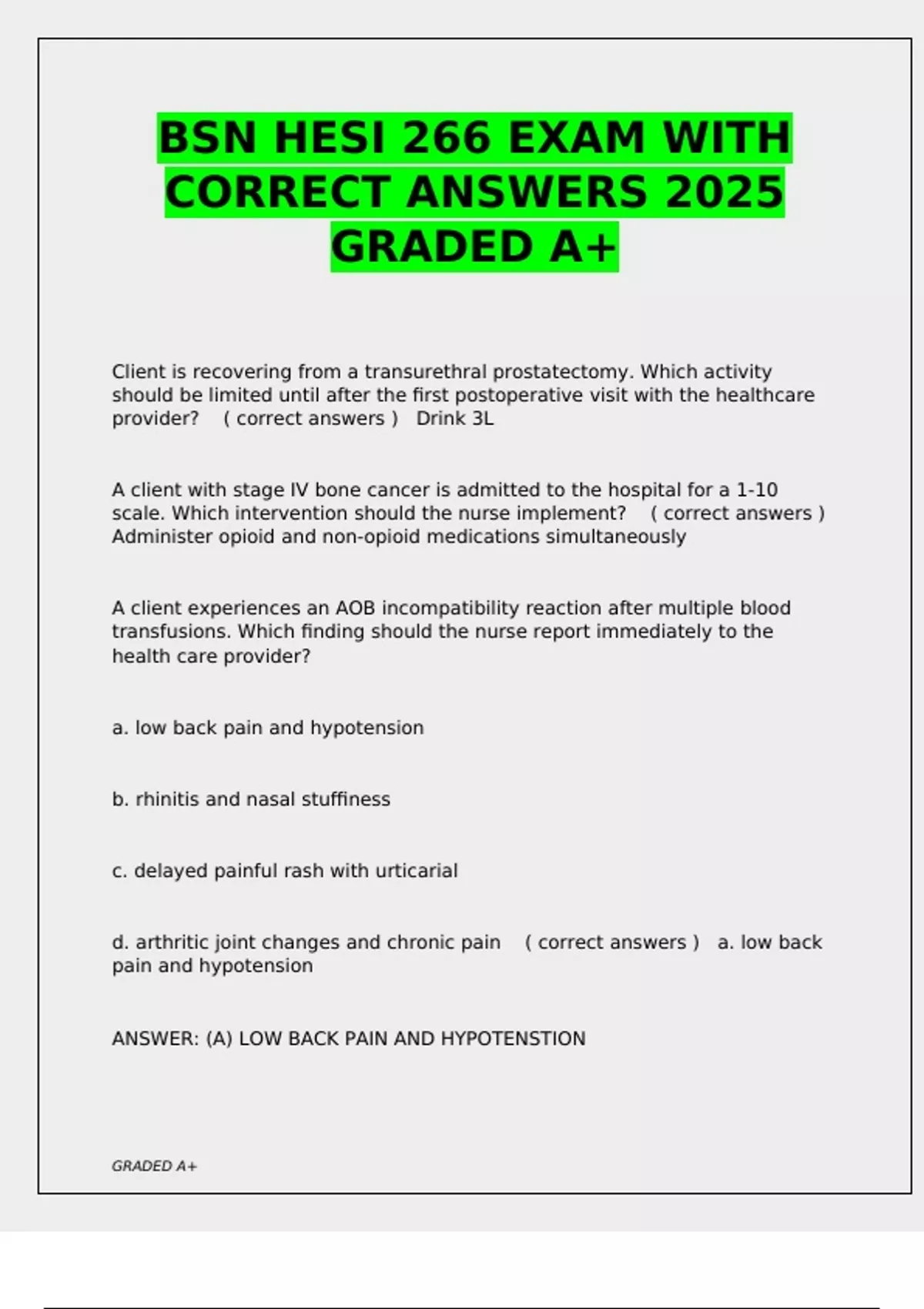 ANSWER: (A) LOW BACK PAIN AND HYPOTENSTION