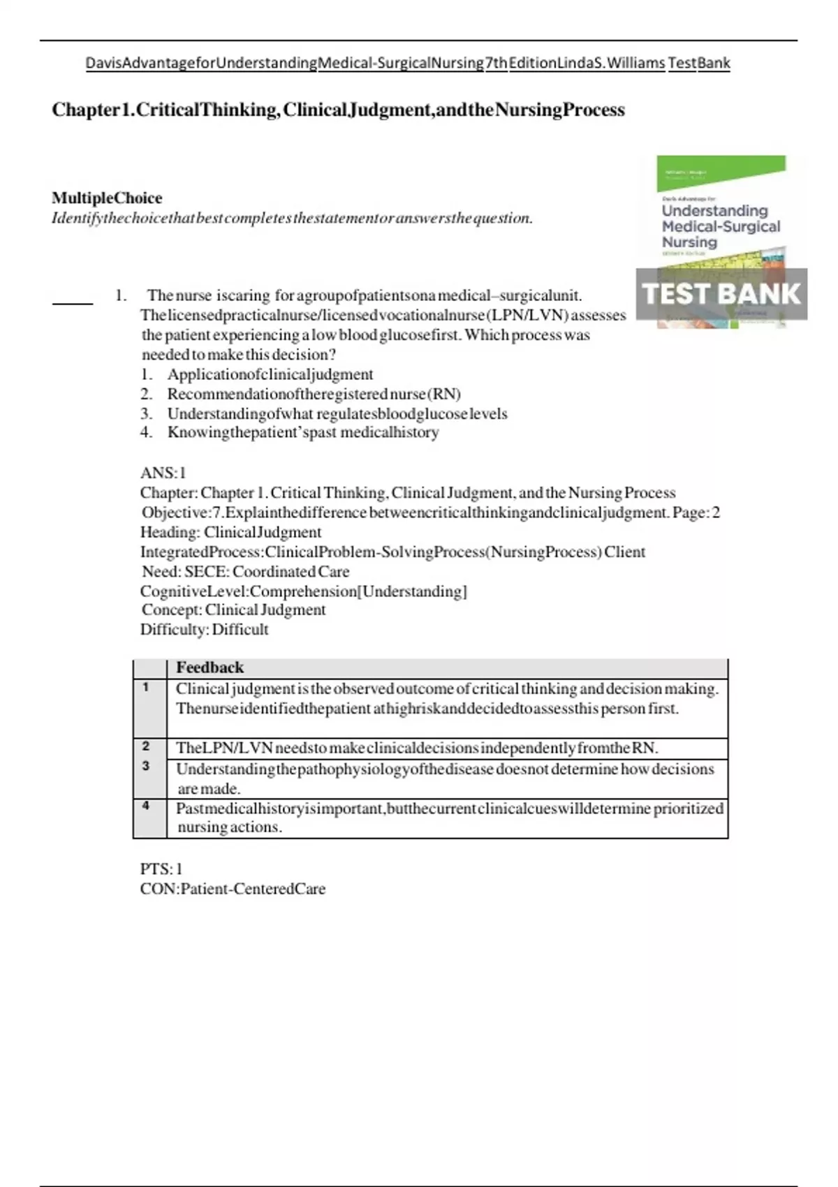 Chapter: Chapter 1. Critical Thinking, Clinical Judgment, and the Nursing Process Objective: