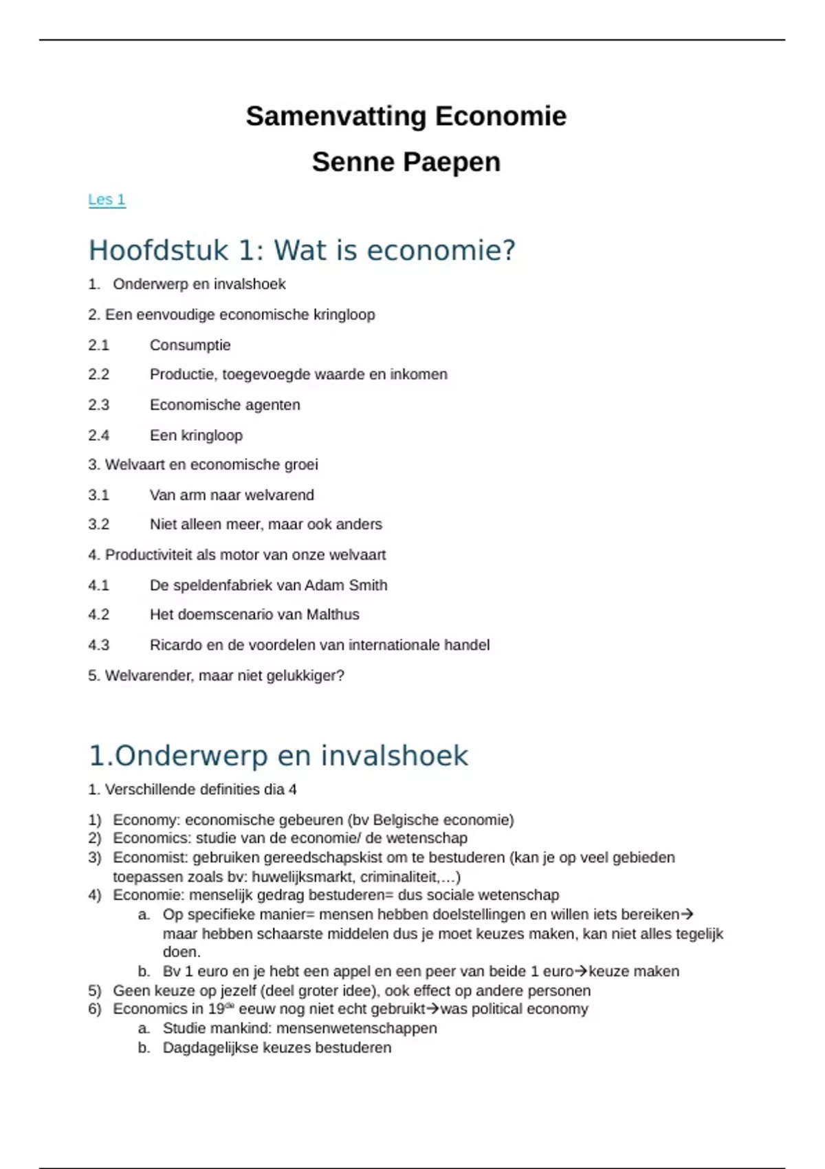 Hoofdstuk 1: Wat is economie?