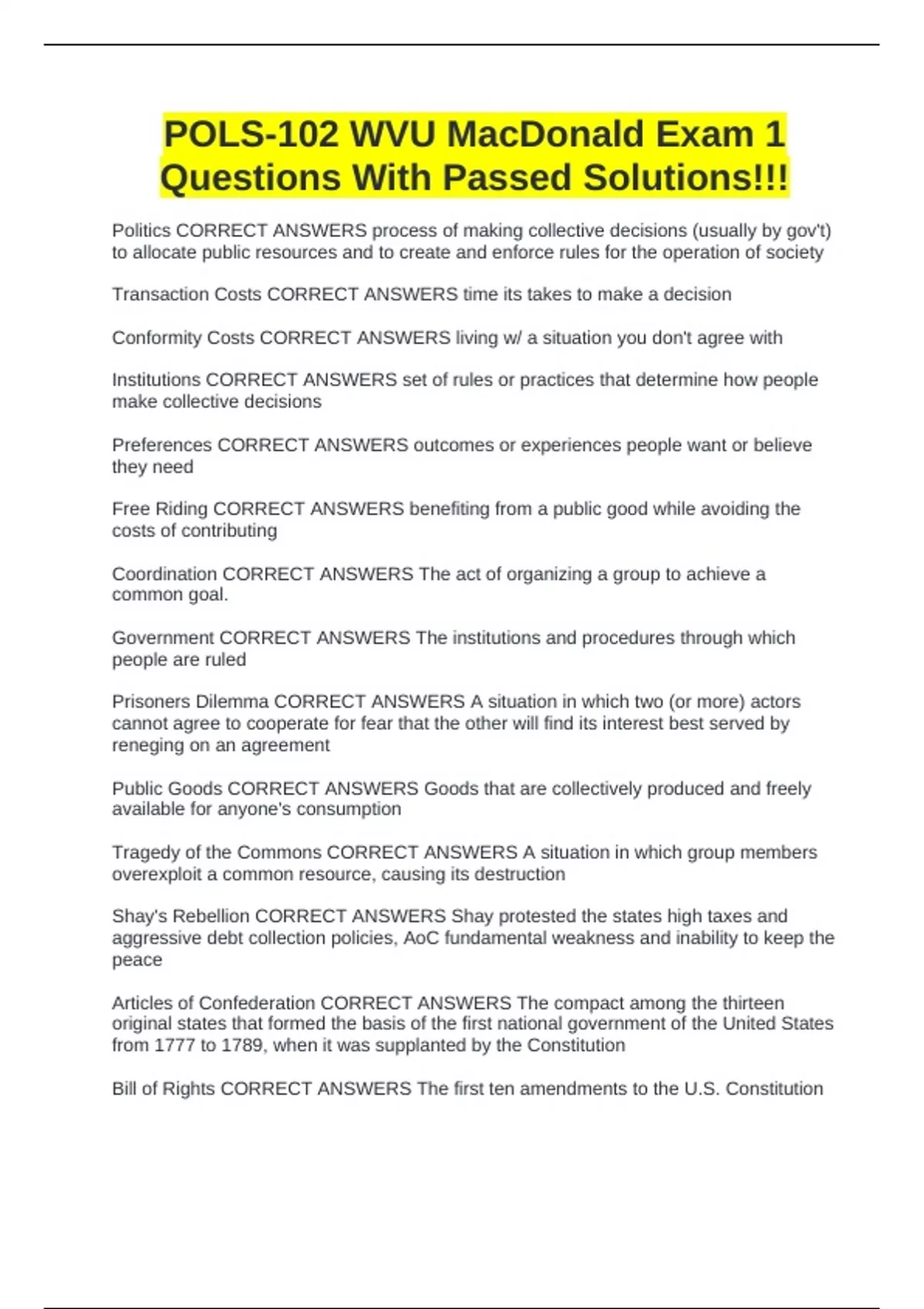 POLS-102 WVU MacDonald Exam 1 Questions With Passed Solutions!!!