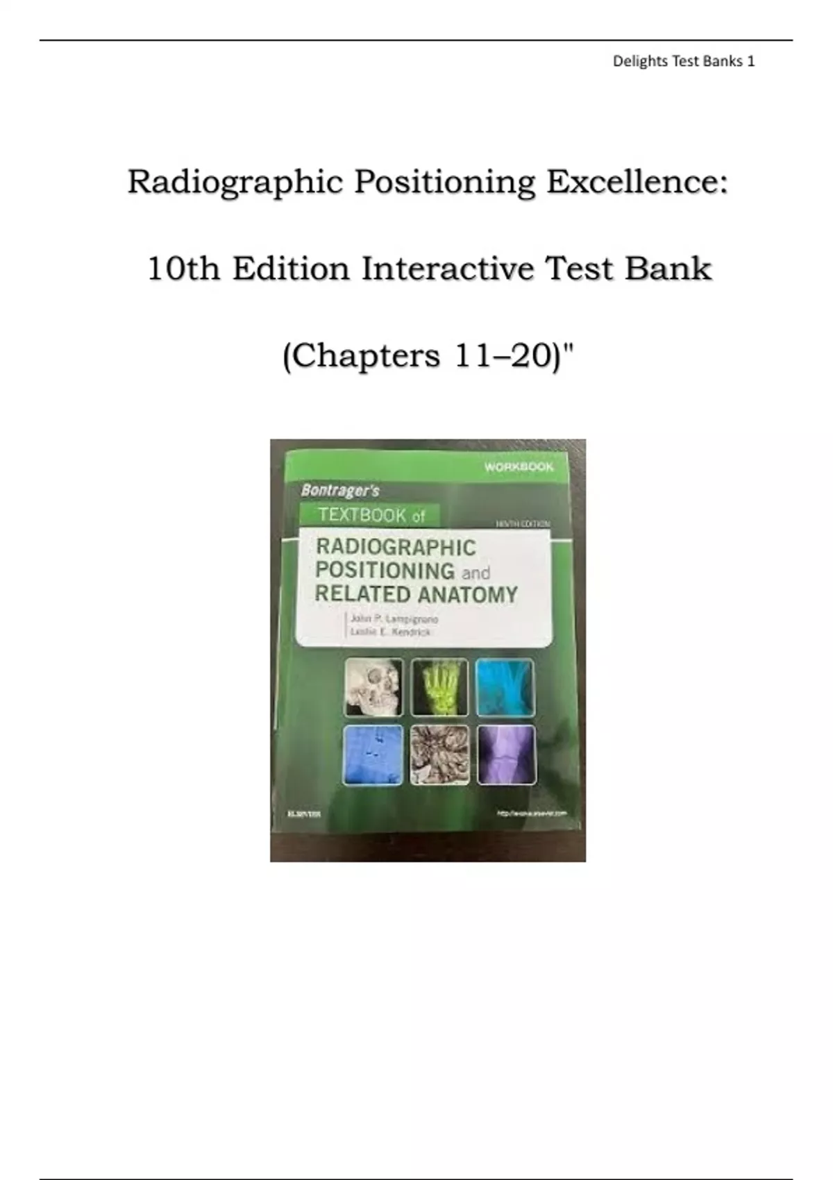 Radiographic Positioning Excellence: 10th Edition Interactive Test Bank (Chapters 11–20)"