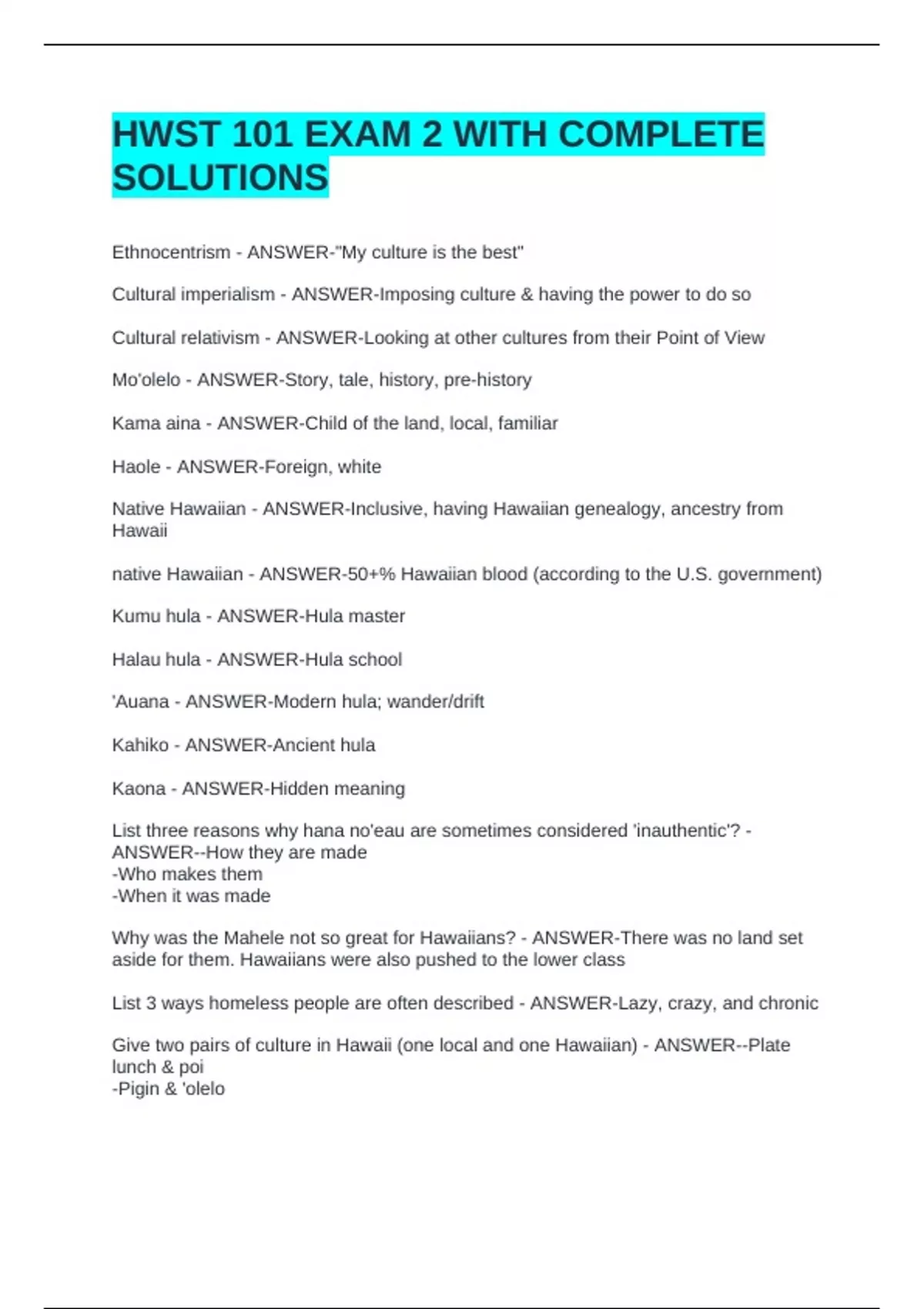 Native Hawaiian - ANSWER-Inclusive, having Hawaiian genealogy, ancestry from