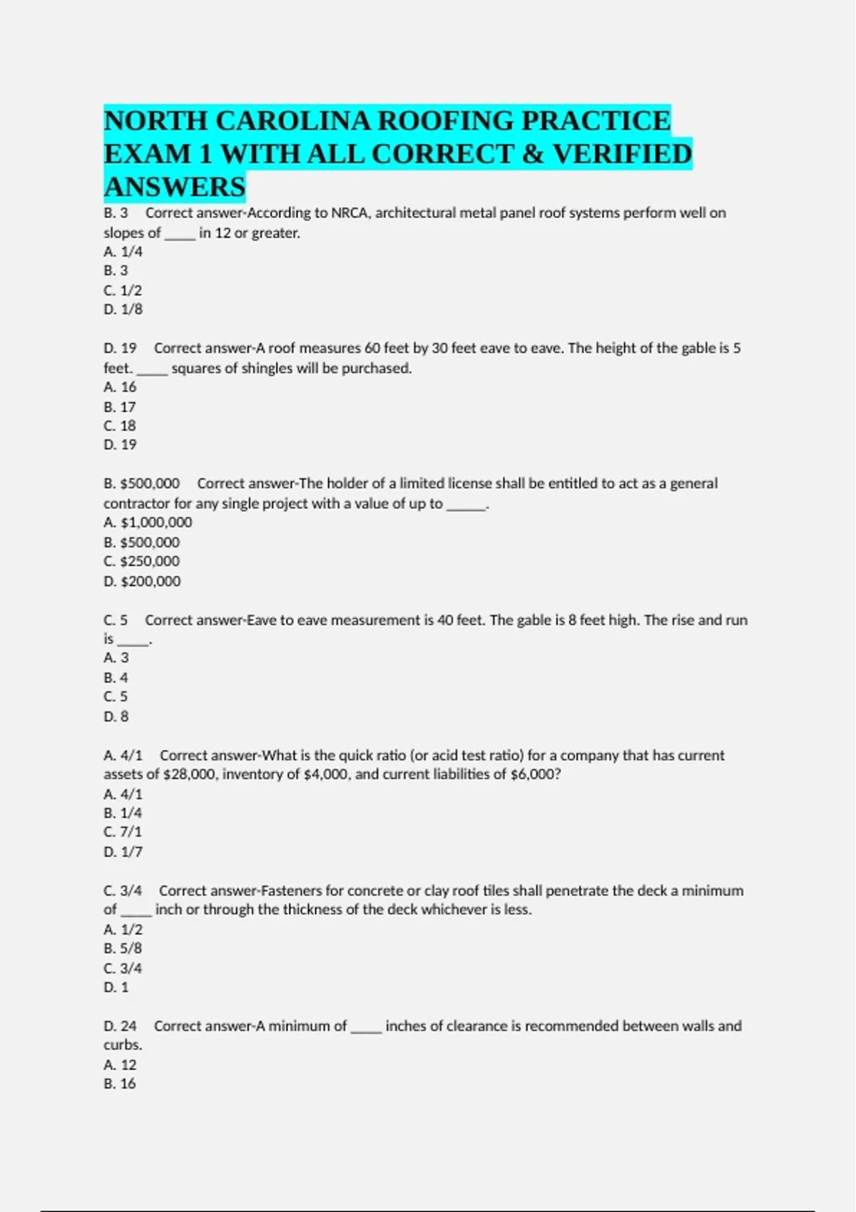 D. 4:12 Correct answer-Slate shingles shall be installed only on roof decks having a slope of ____ or