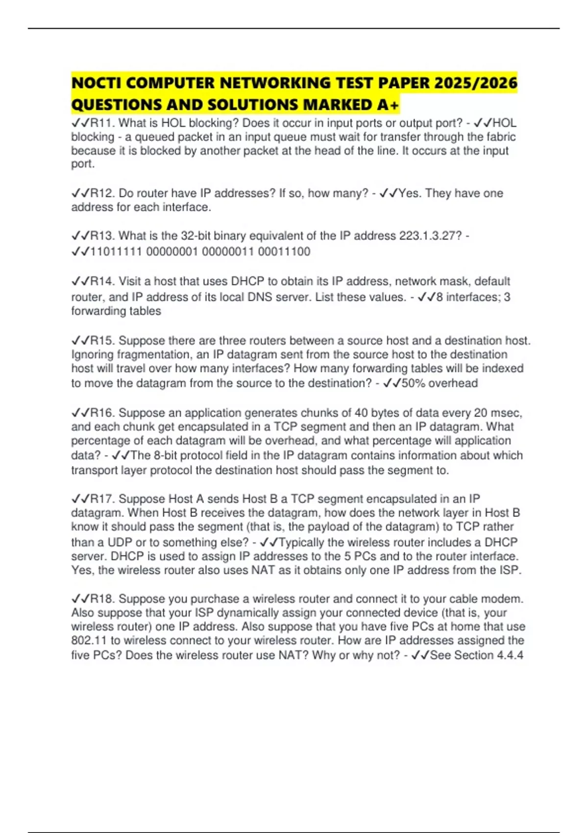 NOCTI COMPUTER NETWORKING TEST PAPER 2025/2026 QUESTIONS AND SOLUTIONS MARKED A+