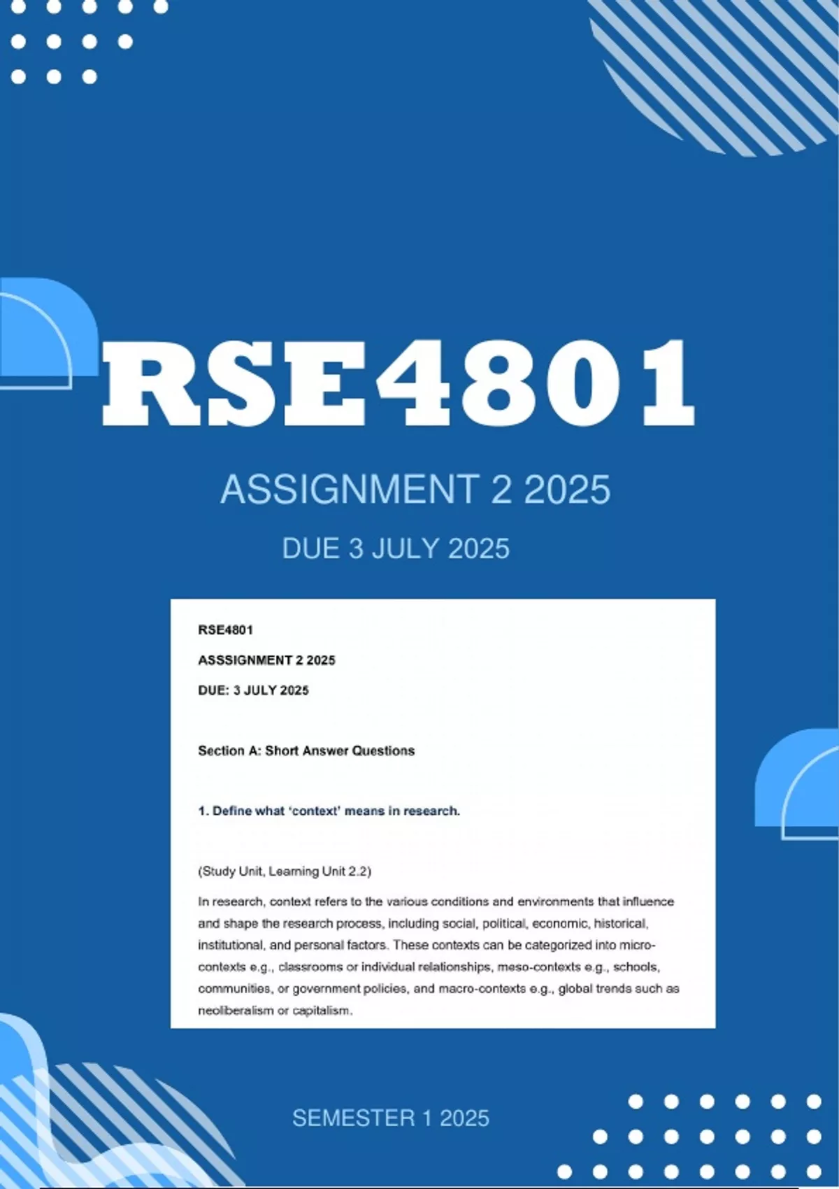 RSE4801 Assignment 2 2025 - Due 3 July 2025