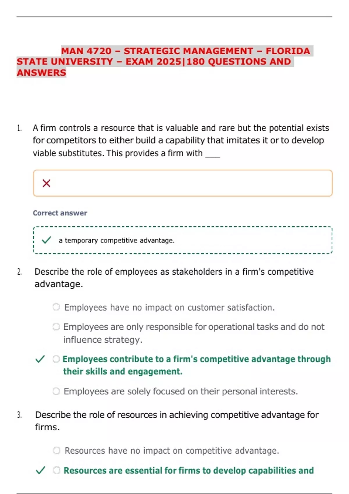 MAN 4720 – STRATEGIC MANAGEMENT – FLORIDA STATE UNIVERSITY – EXAM 2025|180 QUESTIONS AND ANSWERSMAN 4720 – STRATEGIC MANAGEMENT – FLORIDA STATE UNIVERSITY – EXAM 2025|180 QUESTIONS AND ANSWERS