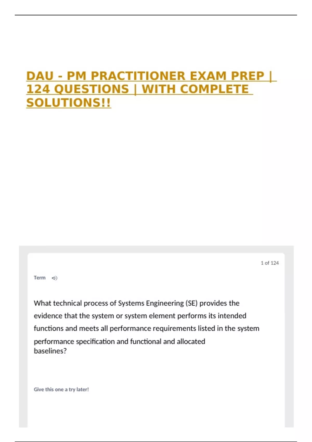 DAU - PM PRACTITIONER EXAM PREP | 124 QUESTIONS | WITH COMPLETE SOLUTIONS!!