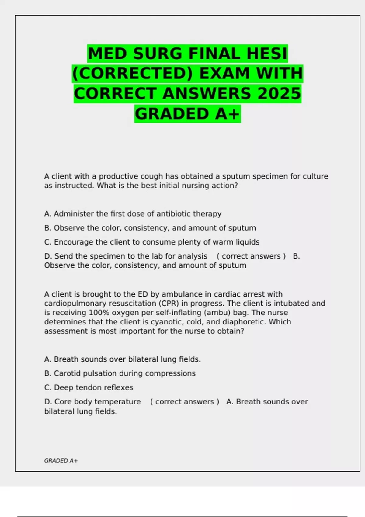 CORRECT ANSWERS 2025