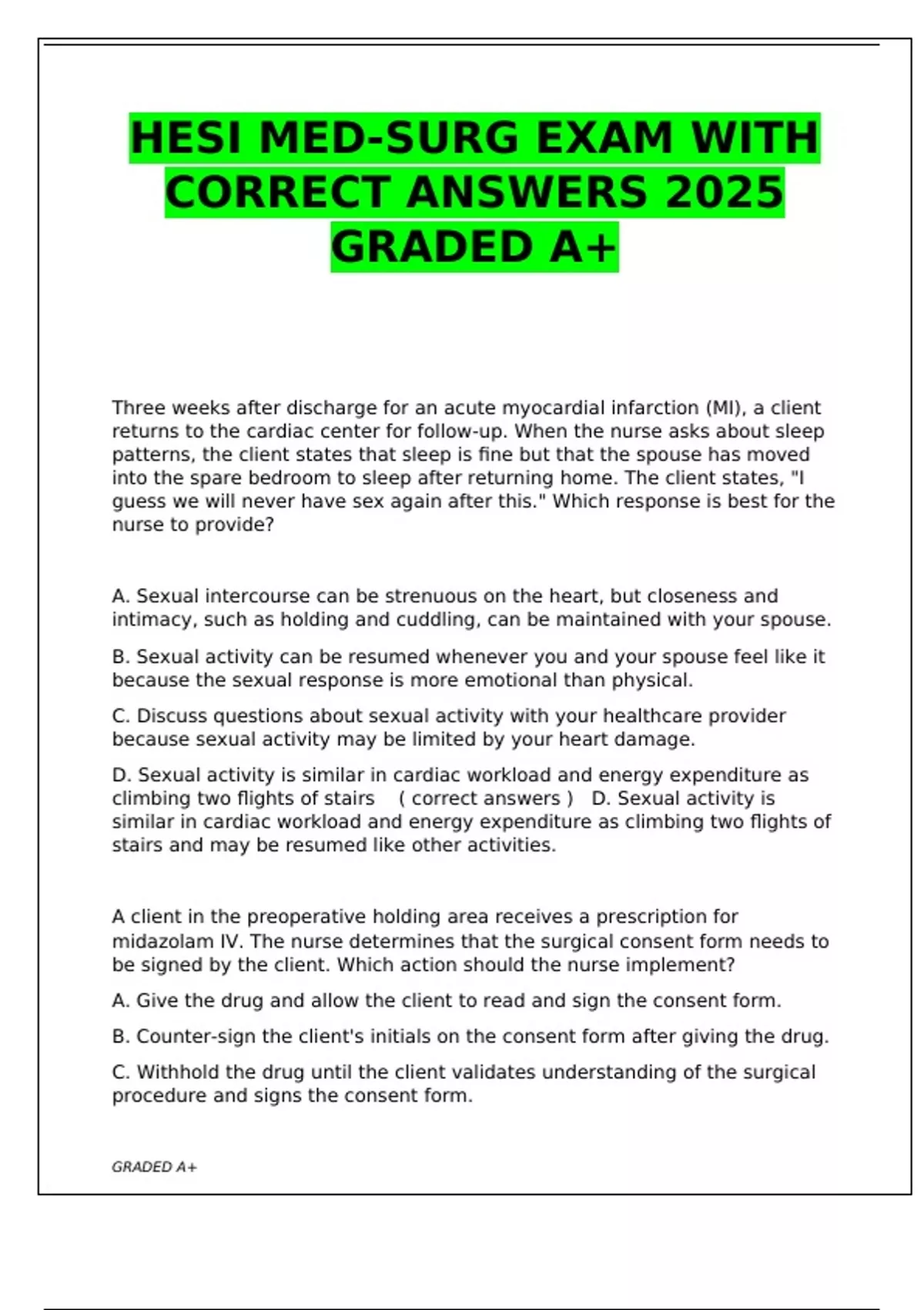climbing two flights of stairs ( correct answers ) D. Sexual activity is