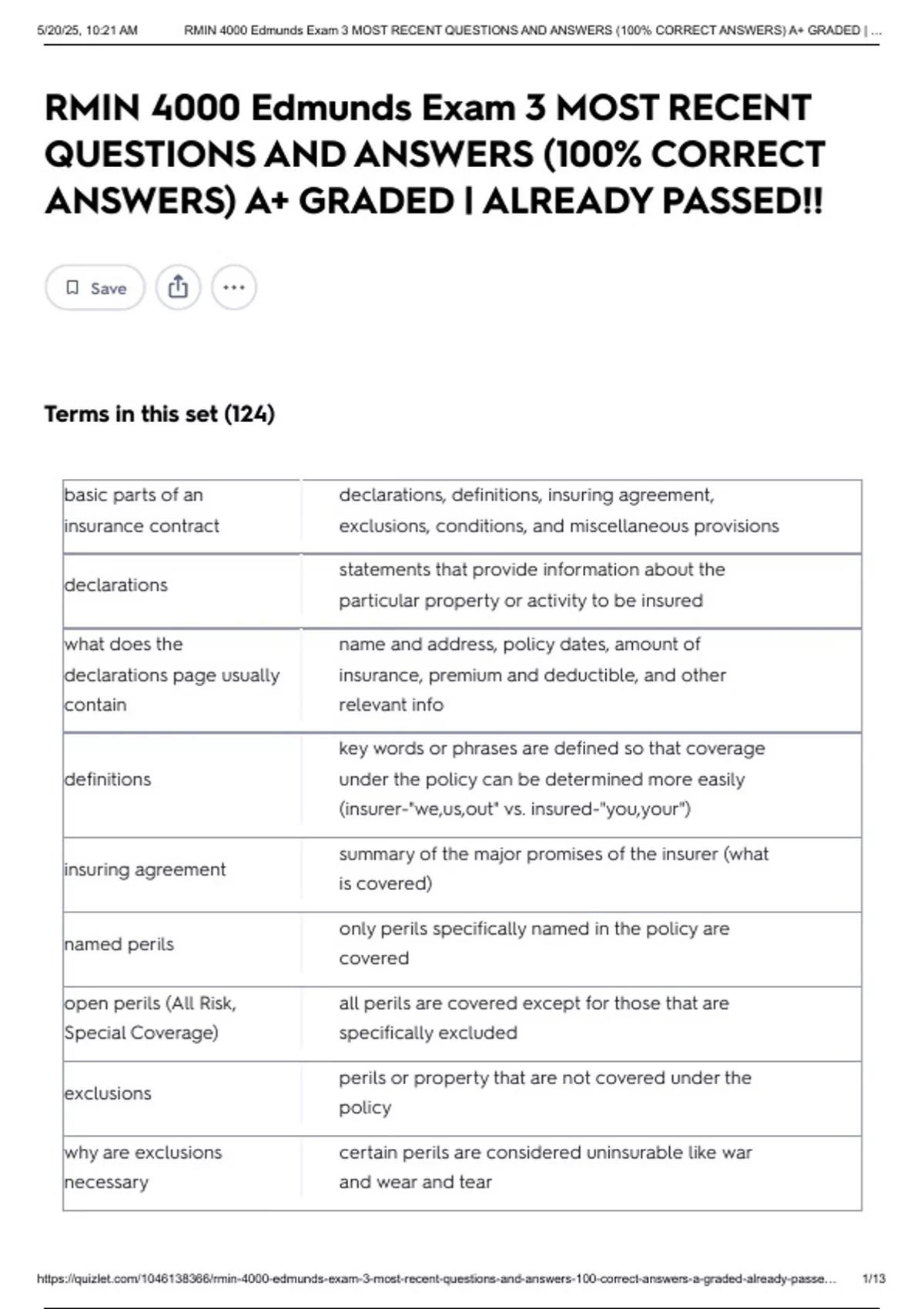 RMIN 4000 Edmunds Exam 3 MOST RECENT
