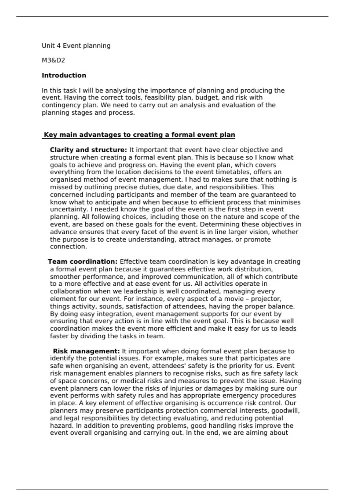 Unit 4 Event planning
