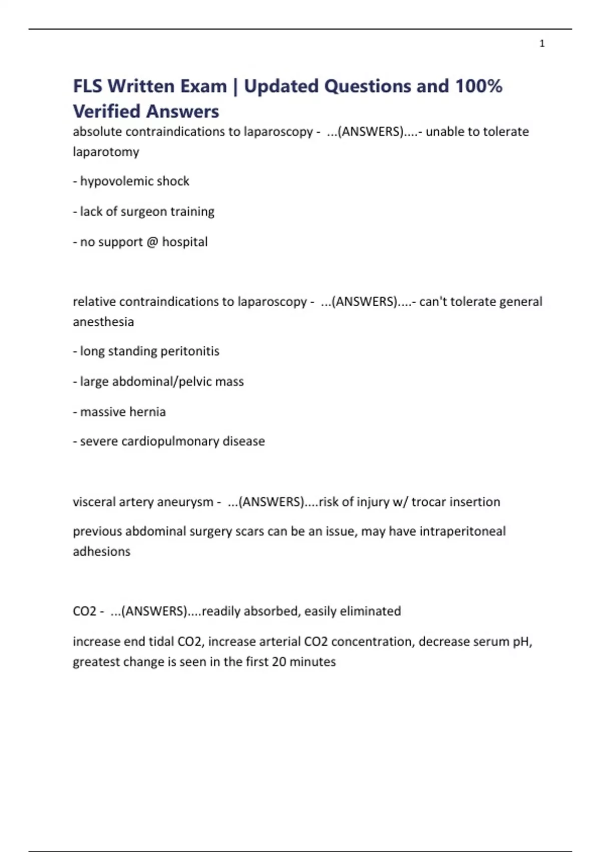 absolute contraindications to laparoscopy - ...(ANSWERS)....- unable to tolerate