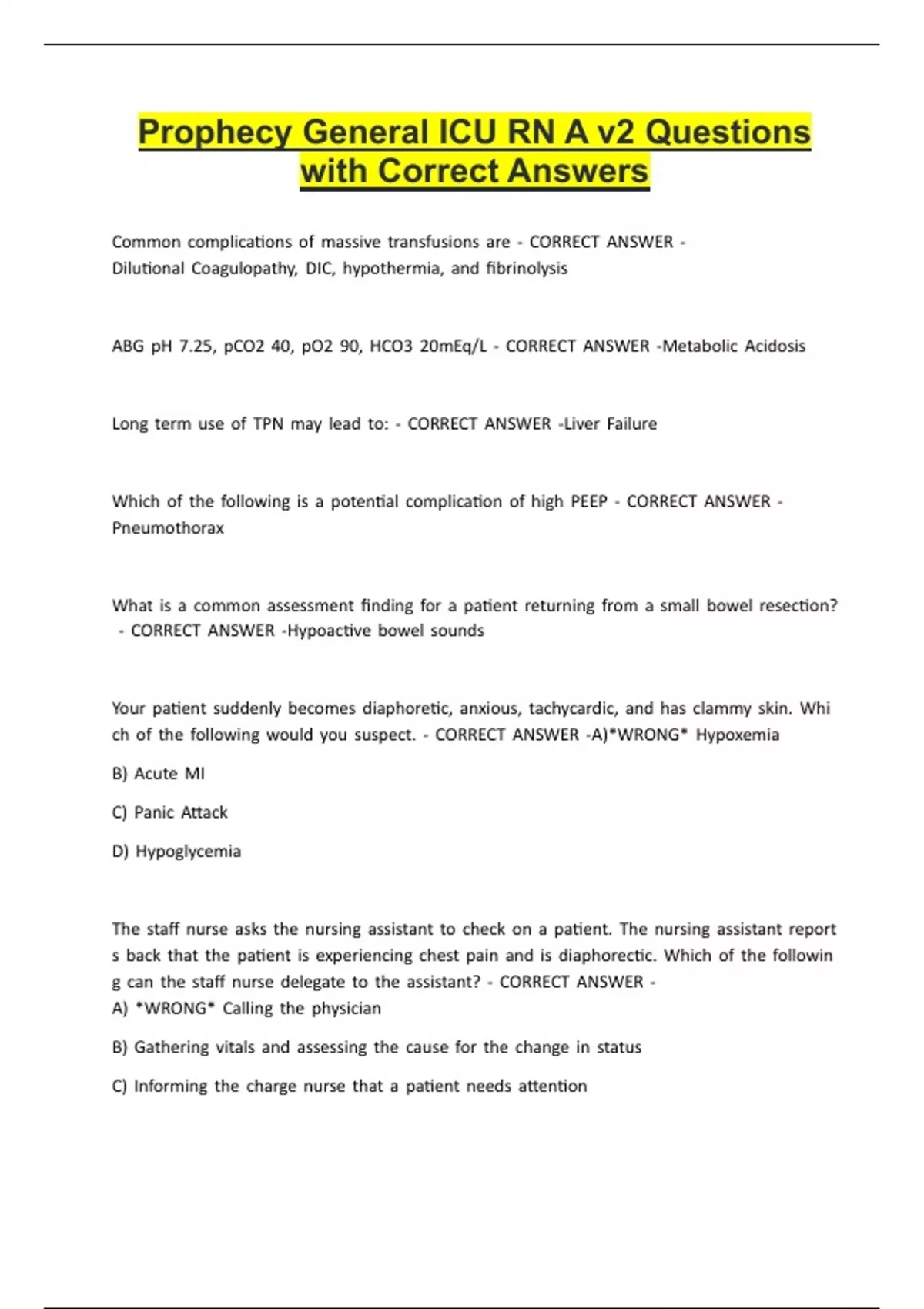 Prophecy General ICU RN A v2 Questions with Correct Answers