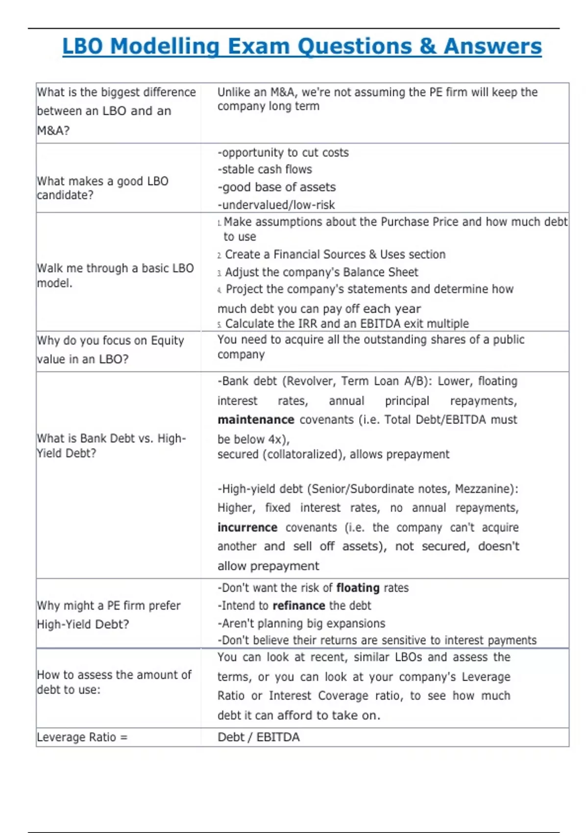 Walk me through a basic LBO 3. Adjust the company's Balance Sheet