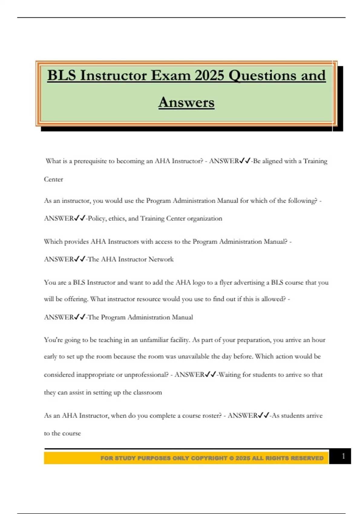 FOR STUDY PURPOSES ONLY COPYRIGHT © 2025 ALL RIGHTS RESERVED 1