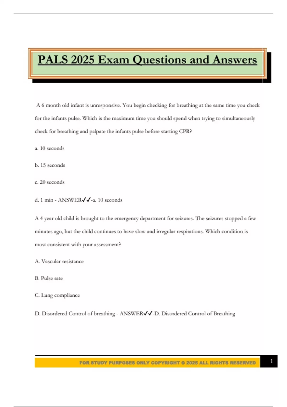 FOR STUDY PURPOSES ONLY COPYRIGHT © 2025 ALL RIGHTS RESERVED 1