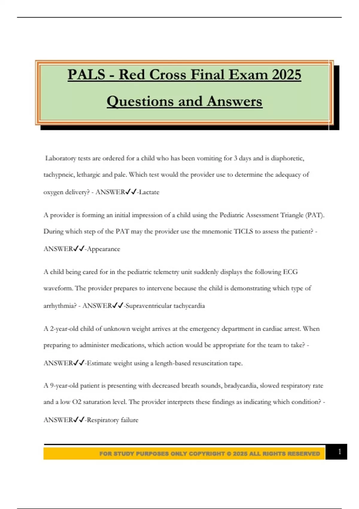 FOR STUDY PURPOSES ONLY COPYRIGHT © 2025 ALL RIGHTS RESERVED 1