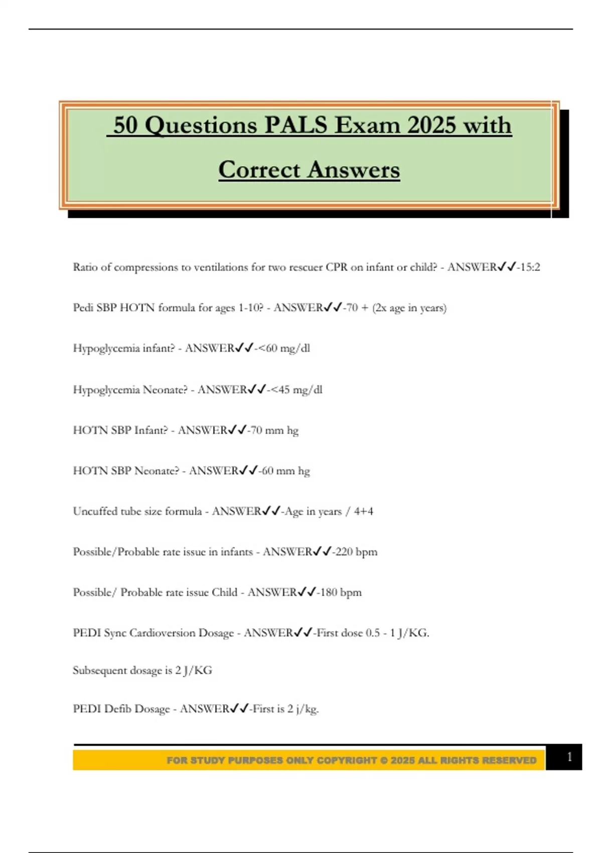 FOR STUDY PURPOSES ONLY COPYRIGHT © 2025 ALL RIGHTS RESERVED 1