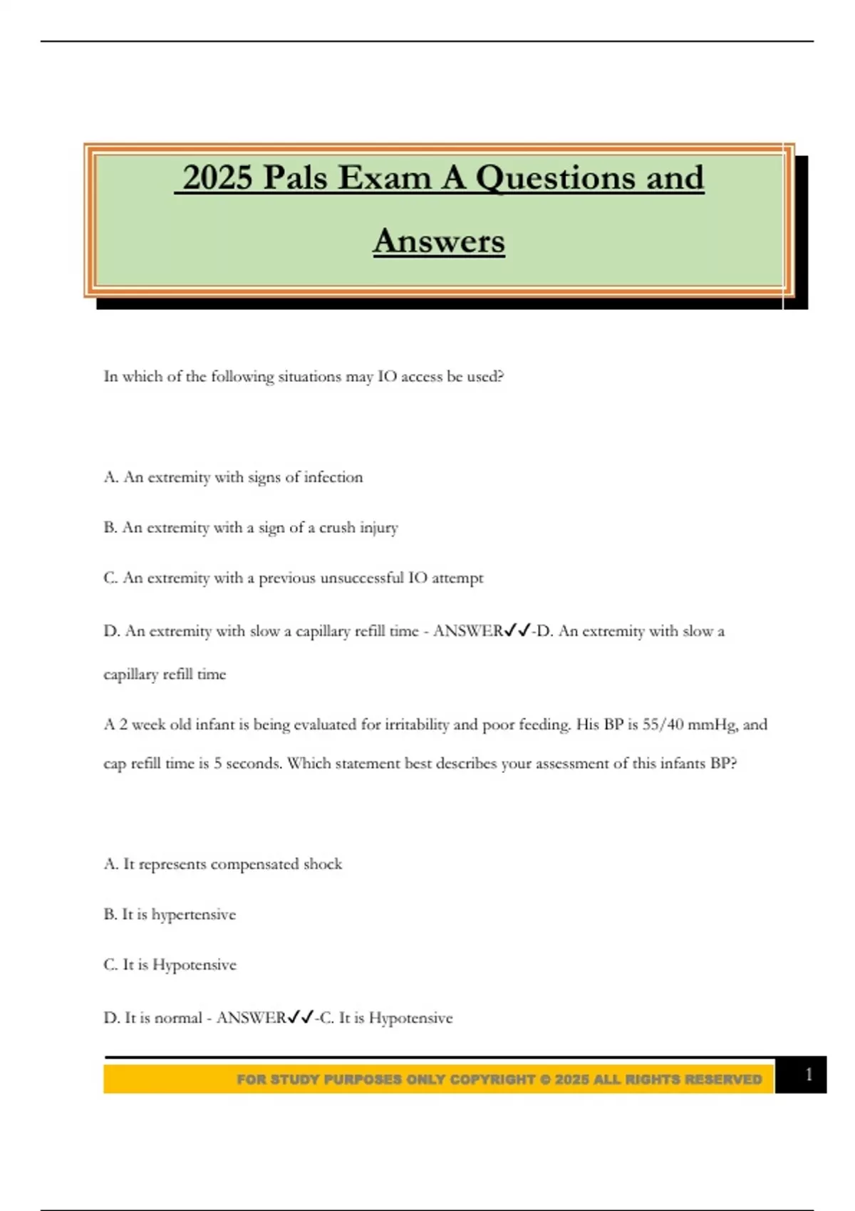 FOR STUDY PURPOSES ONLY COPYRIGHT © 2025 ALL RIGHTS RESERVED 1